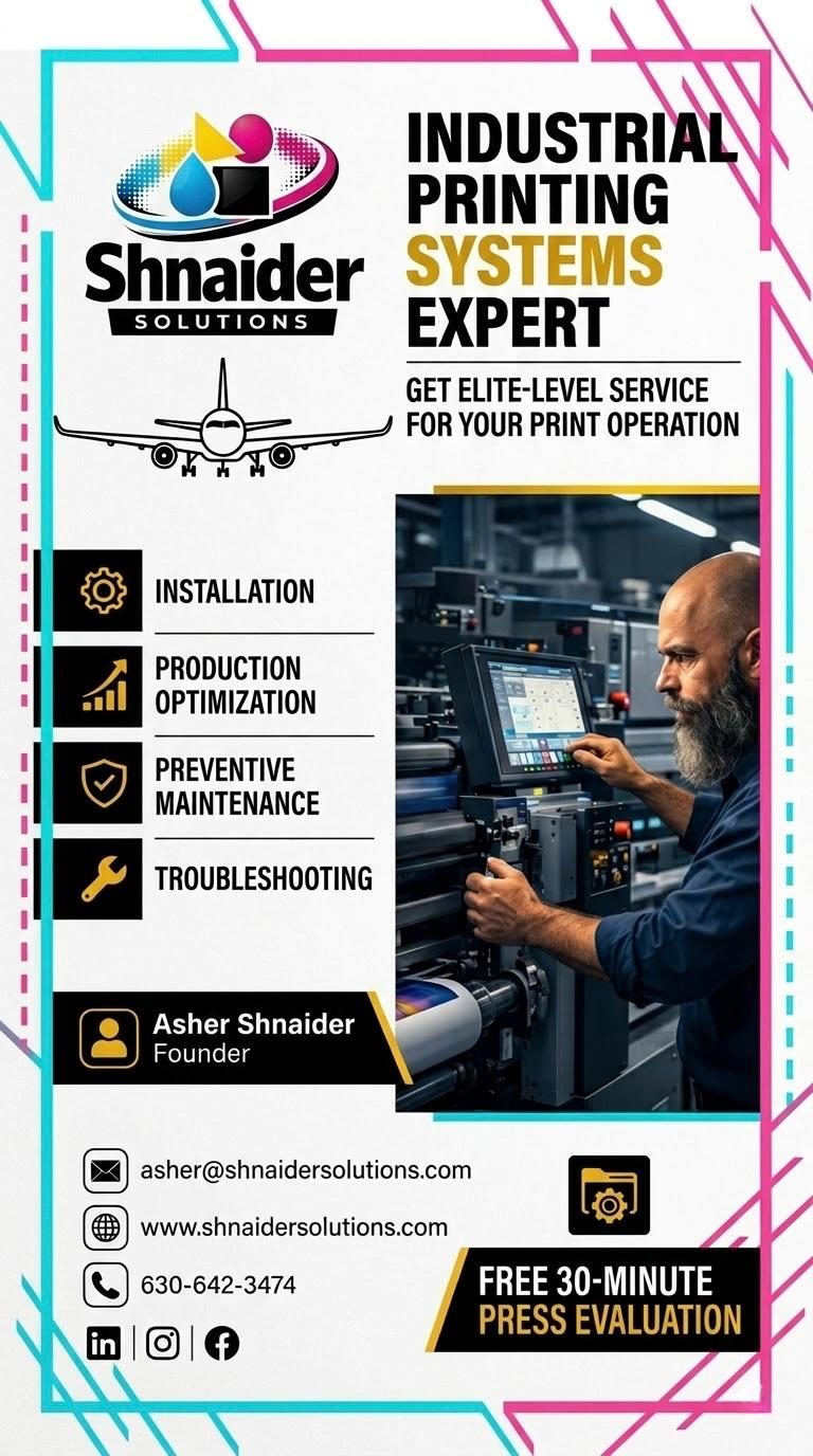 Because production should never stop. After 18 years installing and supporting the most advanced digital printing systems in the world, I saw the same problem everywhere when machines fail, production stops, stress rises, and businesses lose time and money. Shnaider Solutions was created to bring real field engineering expertise directly to print operations, helping them keep presses running, solve complex problems, and get the most out of the technology they depend on every day.